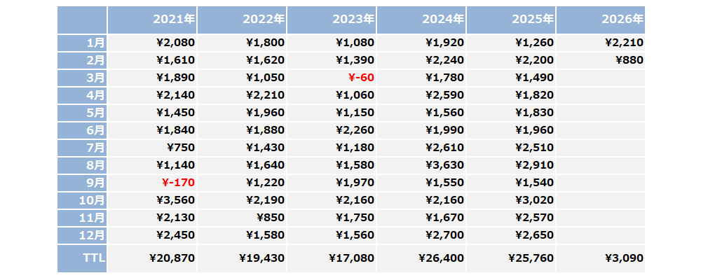当デイトレードシステムは、バックテスト5年(以降はフォワード)の十分なデータ数を消化しており、損益カーブは現在も堅調な右肩上がりを維持しています。全システム共通のフィードバック・ロジックを搭載し、アベノミクスの上昇局面からコロナショック以降の下落相場、その後の停滞期、そして現在の回復局面と、様々なチャート形状で高い収益性を誇る長期安定型システムです。