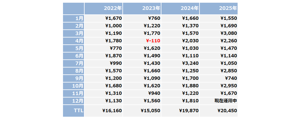 - システム内で損益データを追えるため、検証および日々の運用管理が容易です。